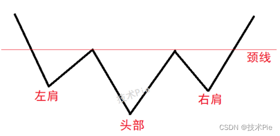 头肩底是一种反转形态,在下降趋势之后形成,其完成标志着趋势的改变。该形态包含三个连续的波谷,中间的波谷(头部)最深,外面的两个波谷(左肩、右肩)较浅。理想情况下,左、右肩的高度和宽度是相等的。该形态中间的波峰可以连接起来形成颈线。(如上图)