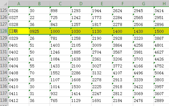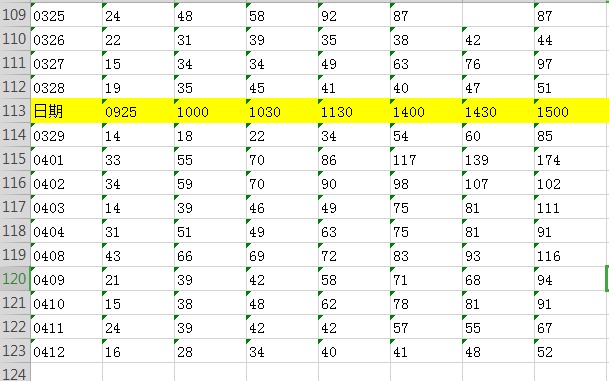 一、股票情绪量化指标之分时的量。对于指数来说,量非常重要,增量资金入场,会推动指数上涨。所以我做了一个表格,每天盘中记录上证的量,除了异动的那几天,基本在早上就能算出收盘时大盘量是多少。大家可以去比一下。