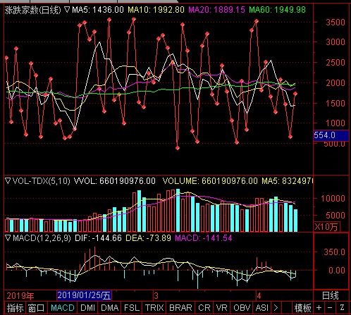五、股票情绪量化指标之通达信涨跌家数指标880005,这是非常直观的一个指标,一般到了500左右,会反弹,到了3000后会下,这个指标指的是红盘的股票数。