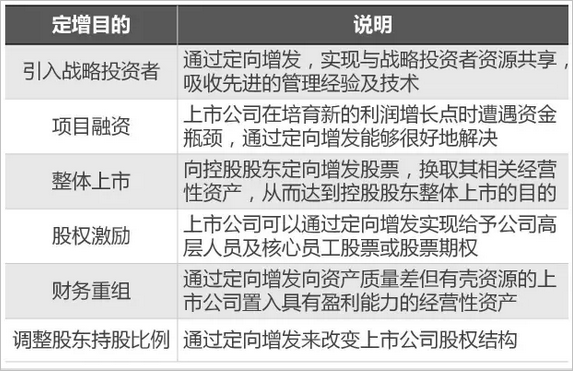 上市公司定向增发的目的