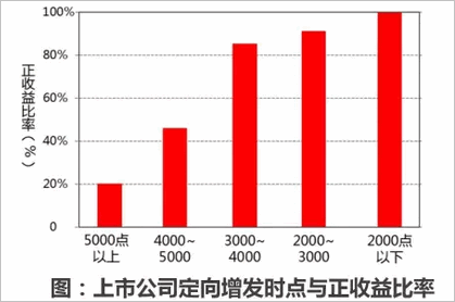 定向增发时期处于大盘综合指数的低位运行阶段的收益明显高于高位运行阶段