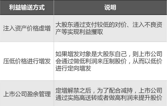 定向增发可能涉及的利益输送方式