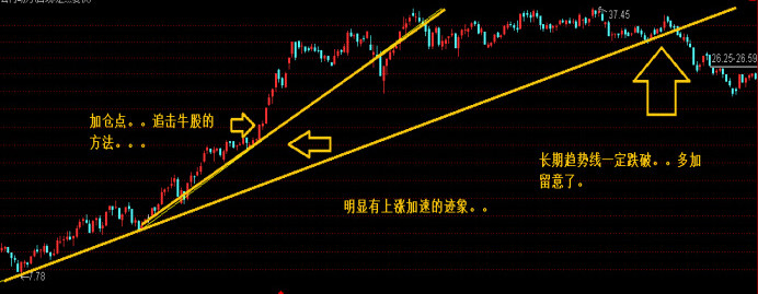 趋势线的角度决定了当时走势的强弱。但这只是一个相对分析。