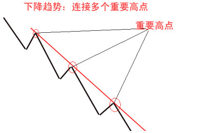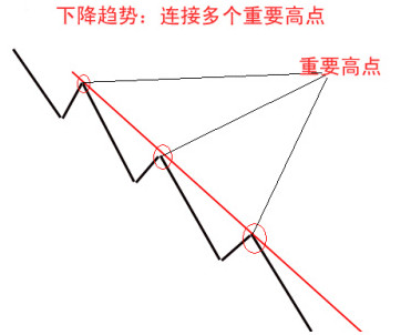 前期高点的连线容易形成阻力,前期低点的连线容易形成支撑,这是寻找重要阻力和支撑的方法。