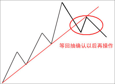 这就是在对待趋势线的时候,应该注意的 看跌不跌必须买回,看涨不涨应该离场 的另外一个重要陪伴依据。