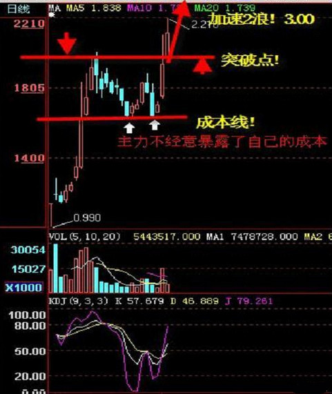 突破与跌破行为,不在于突破或跌破多少百分比,或是突破或跌破几天,而在于关键价位的分析。真突破必须针对压力或关卡进行多头表态,也就是以明显的多头走势站上颈线(如中长阳线),且当比K线的收盘价必须收在颈线之上,而当笔K线的低点即为观察点,未来股价没有跌破该低点,并满足某一个测量幅度,就是真突破。跌破的判断亦然。