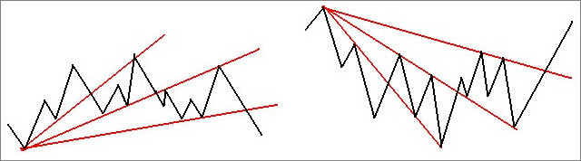 扇形三条线有一个明显的特色,趋势线之间的夹角大致相等,这可作为协助我们取线的辅助观察法。