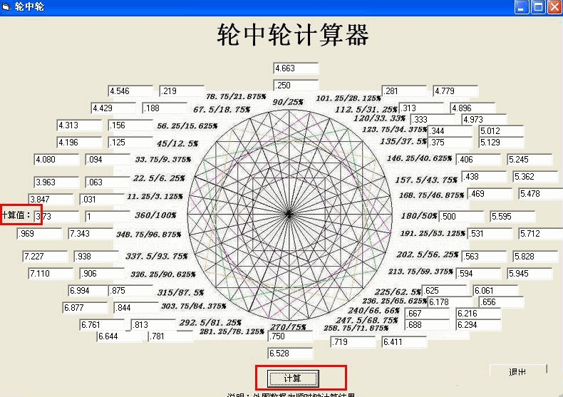江恩轮中轮计算器是江恩理论研究者为方便计算而做出的一个工具,最初发布于赢家江恩老论坛,它简化了计算大量数据这个麻烦的过程,只需要简单就能操作,而这个工具实际上是不能称为轮中轮的,首先它没有预测时间的功能,这是最根本的缺憾,而我们今天在网络上也可以看到很多关于该软件的信息,其实大多是不符实际、不正确的。甚至在使用方法介绍上也是模棱两可,且错误解释居多。对此,我们对其予以纠正,以免误导更多投资者。