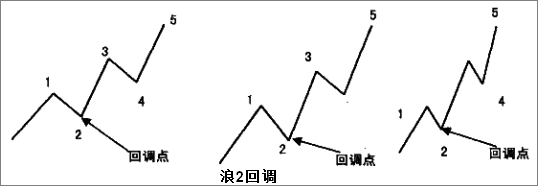 从图中我们可以看到每一种的回调深度和回调幅度不一样,但是,这些回调点都没有击破浪1的底部。