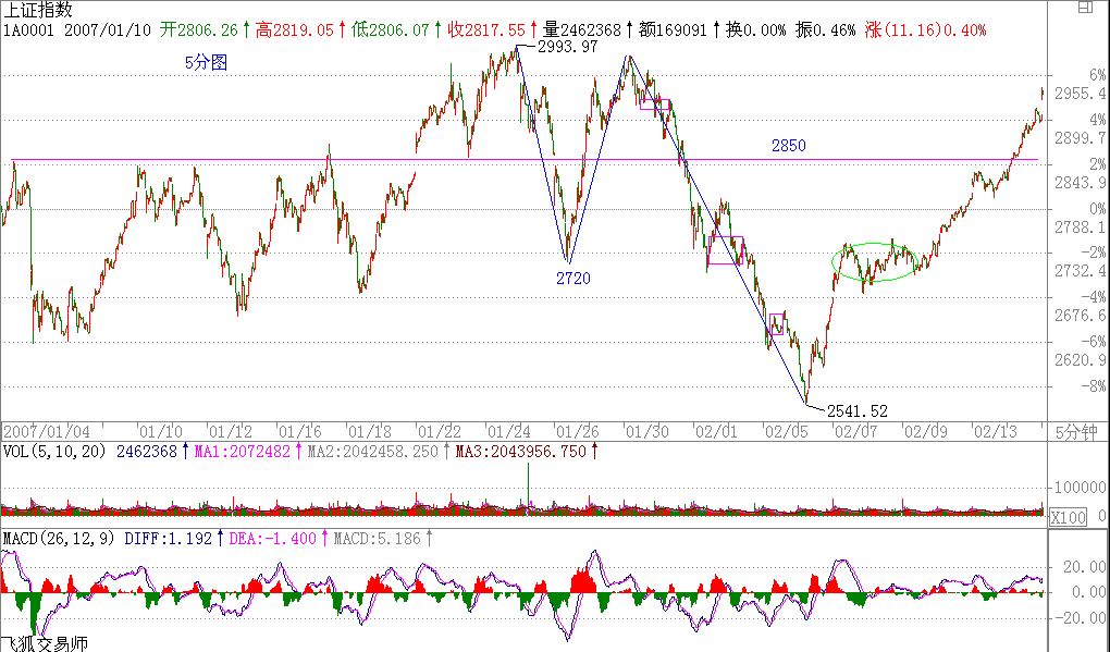 大盘在前面强调的2850压力下出现1分钟级别的背驰进入震荡,是最正常不过的事情,毕竟汉奸已经受汉奸影响而心态不稳的依然占了多数,不经过一点拉锯来稳定人心,寻找战机,是不现实的。还有三天,可以去努力让春节有一个满意的指数。