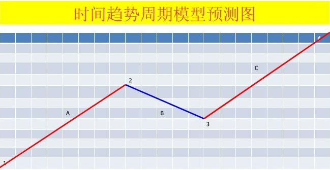 根据已知趋势周期预测未来同向或反向趋势终点:已知趋势A始于点1止于点2运行8个时间周期,则趋势B将运行8 0.618 5个时间周期;B 1.618 C运行的8个时间周期。