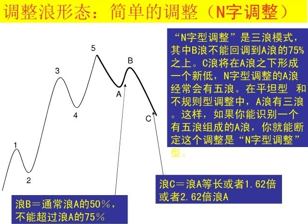 第4浪:如果第4浪以平坦型或N字型出现,a小浪与c小浪的长度将会相同。第4浪与第2浪经常是交替形态的关系,即单复式交替或平坦型、曲折型或三角形的交替。