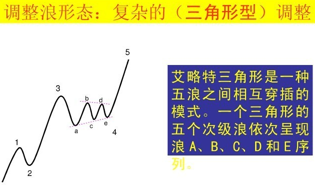 经常以较为复杂的形态出现,尤其以三角形较为多见。通常在第3浪中所衍生出来的较低一级的第4浪底部范围内结束。