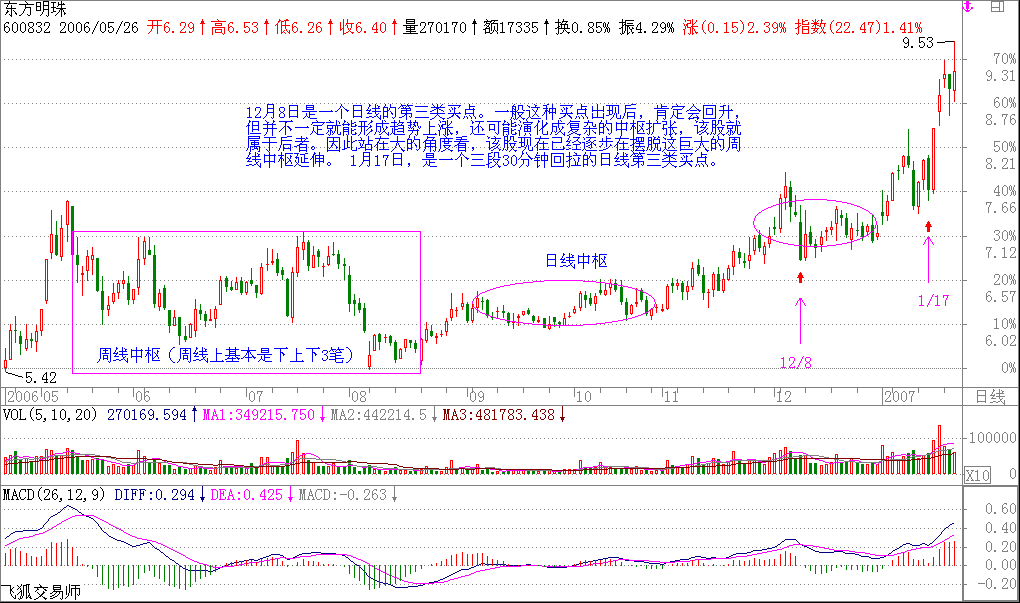 2007-01-18 22:11:08 无言 缠姐,你看错了,我说的是600832日线和周线出现第三买点.