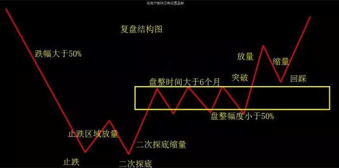 1:价形态:前面必须有一个大幅杀跌的过程,幅度大于50%,是一段连续的下跌,就是高点和低点都是不断降低的过程。大幅杀跌之后,必须要有一个明显的反弹的阶段,反弹之后再次下跌,所谓二次探底,就是这个底部与前面的杀跌形成的底部在价格上相差不大!