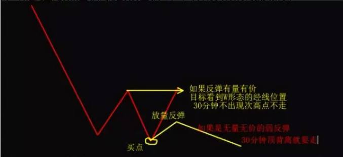 如果买入之后跌破底部结构应该止损,这是买入之后下跌的情况!就是简单的止损!如果买入之后上涨,也是要分两种情况一种是有量有价的上涨,就是强势上涨,可以多持有看看,30分钟不出现次高点不卖,价格可以看到上次反弹阶段的高点,另一种是无量无价的上涨,就是弱势上涨,那么30分钟持续顶背离就要卖了。