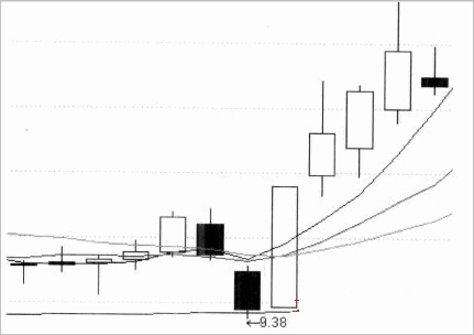 2.阳线的长度倒不一定非要限制在多少涨幅之内,涨停也是可以的。只是对三条短期均线的向上穿破是一定要出现的,属于一个必要条件。