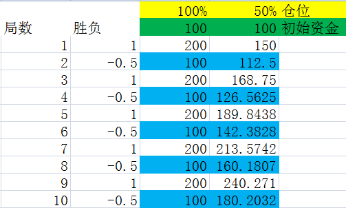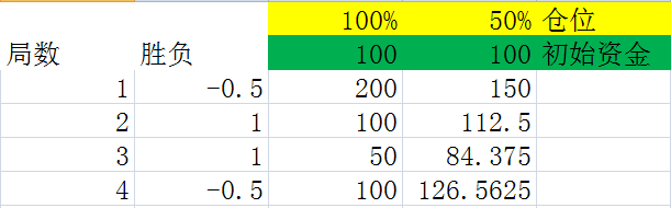 我们假设赌局的胜负是交替进行的,由于结论一,从长期来看这对结果资金没有任何影响。