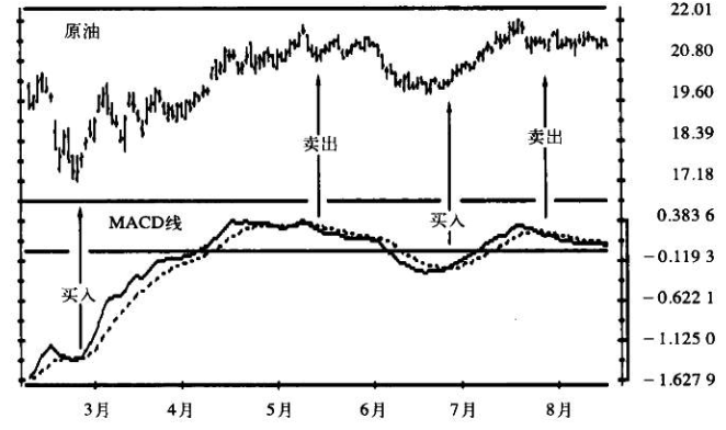 MACD线与讯号线之间的穿越,可以反映市场潮流的变动。顺着穿越方向交易,相当于是顺着潮流前进,相对于单一移动平均线的交易方法来说,这套系统所提供的交易讯号较少,讯号反复的可能性也比较小。