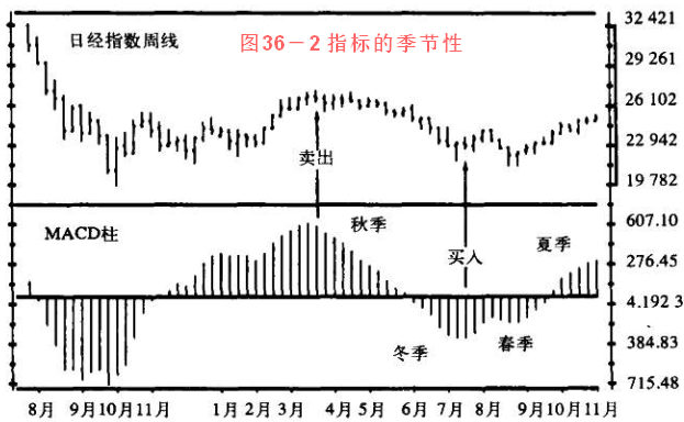 图36-2指标的季节性:此处是以MACD柱状图为例说明,但季节性的观念几乎