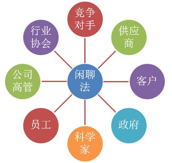 闲聊法应运而生。闲聊法是一种深入了解企业的可行方法。通过和与目标公司的存在利害关系的人 闲聊 ,了解他们对公司的看法,从而获知每一家公司在业内的相对强弱势。费舍认为,准确地运用 闲聊法 ,其准确性让人乍舌。