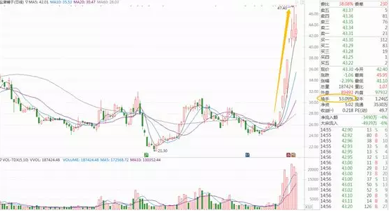 6、行情初始阶段某只股票连续三天以上换手率大的吓人,平均一天10%以上,股价连续飙升,这时候就要注意,这可能是板块中领涨的股票。