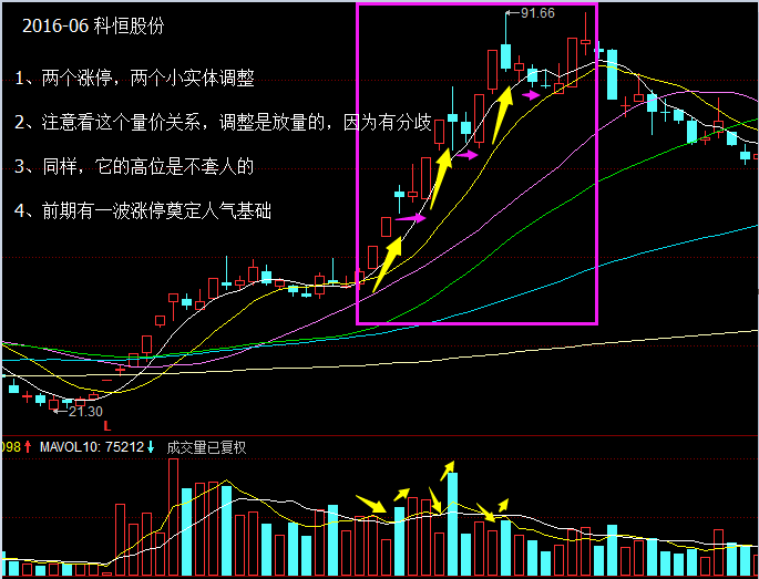 1、调整的期间是放量的,说明这个阶段资金是分歧的,后面涨上去是一波又一波资金接力的。而强趋势票很多情况是有资金锁仓的。