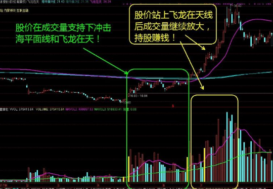 2、股价有效站上飞龙在天线后,成交量越是连续保持放大越牛!应该持股!