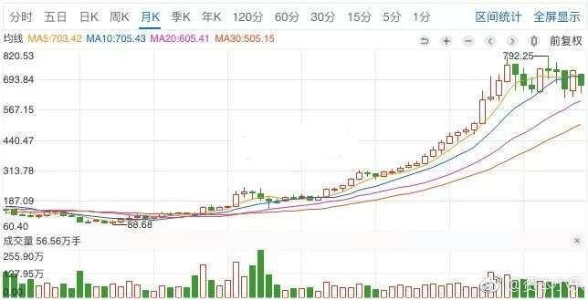 以上三个图形分别是贵州茅台(SH600519)、爱尔眼科(SZ300015)和福耀玻璃(SH600660)的月K线。(作者并不持有以上股票,不作荐股)