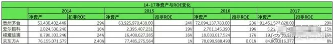 以下是14-17年几家企业的净资产,扣非ROE的变化情况:
