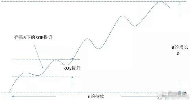 如果用相对形象的图来表示,净资产的增长空间,ROE的高度和持续时间以及它们如何影响企业的价值。