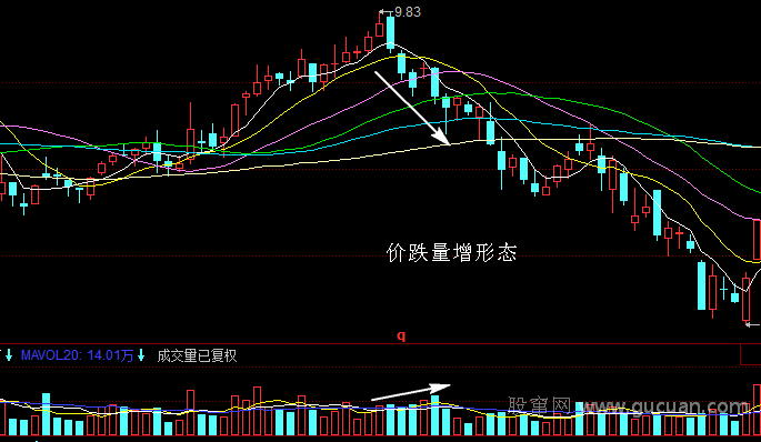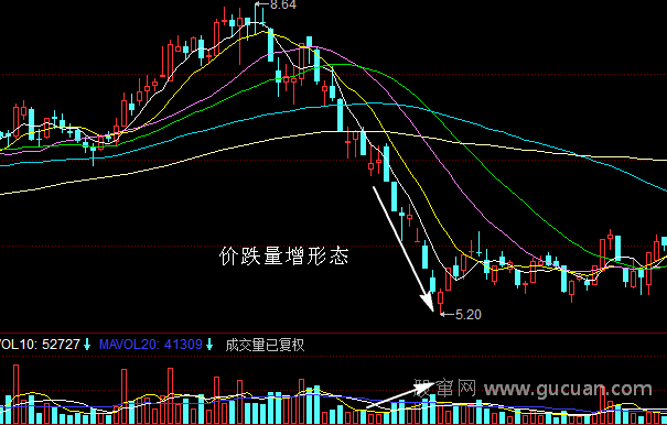 价跌量增,是指在股价的下跌过程中成交量也在不断增加,表示股价下跌正在市场上造成恐慌,越来越多的投资者开始抛出股票。股价下跌的动力在不断增加,后市股价将继续下跌。这一现象在牛市结束、熊市来临的顶部转折时最为常见。