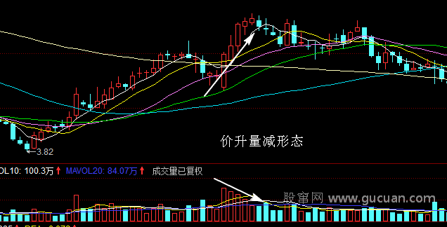 (3)价升量减的实战技巧 价升量减,是指在股价上涨过程中成交量不断减少,表示股价虽然仍在上涨,但是上涨动力逐渐减弱,更多的是依靠惯性在涨。这一点在牛市中后期的长牛股上表现的最明显。 当出现价升量减的走势时,表示股价仍有上涨空间,投资者可以继续持股待涨。但此时已经量价背离,投资者需要时刻关注未来走势,警惕顶部的到来。 如图所示,万科A(000002)的股价连续上涨,同时成交量却逐渐萎缩。这说明当前股价上涨动力不足,持仓投资者需要警惕顶部的到来,空仓投资者此时不宜介入,应该等股价调整结束后再入市不迟。