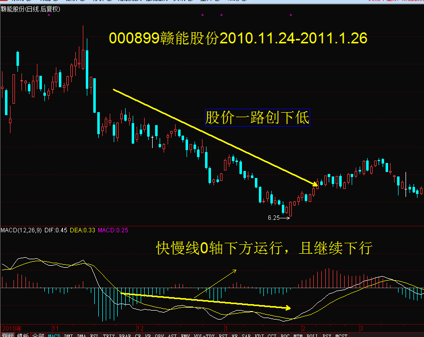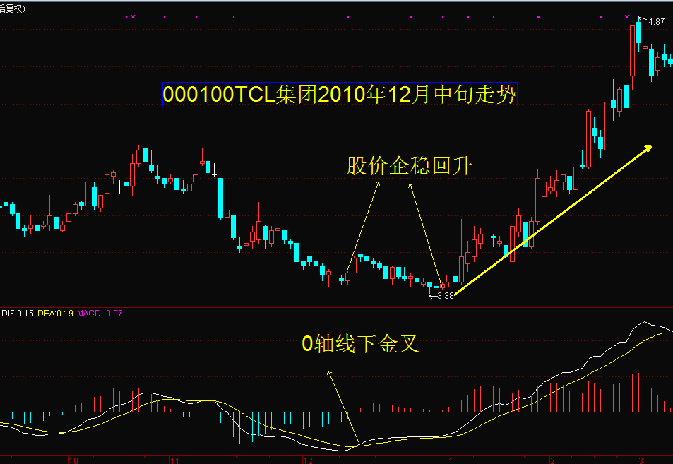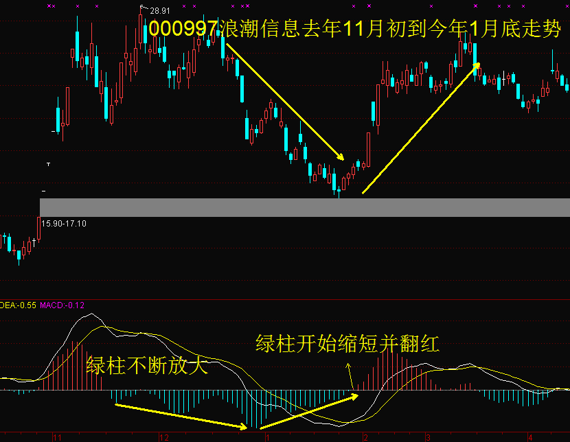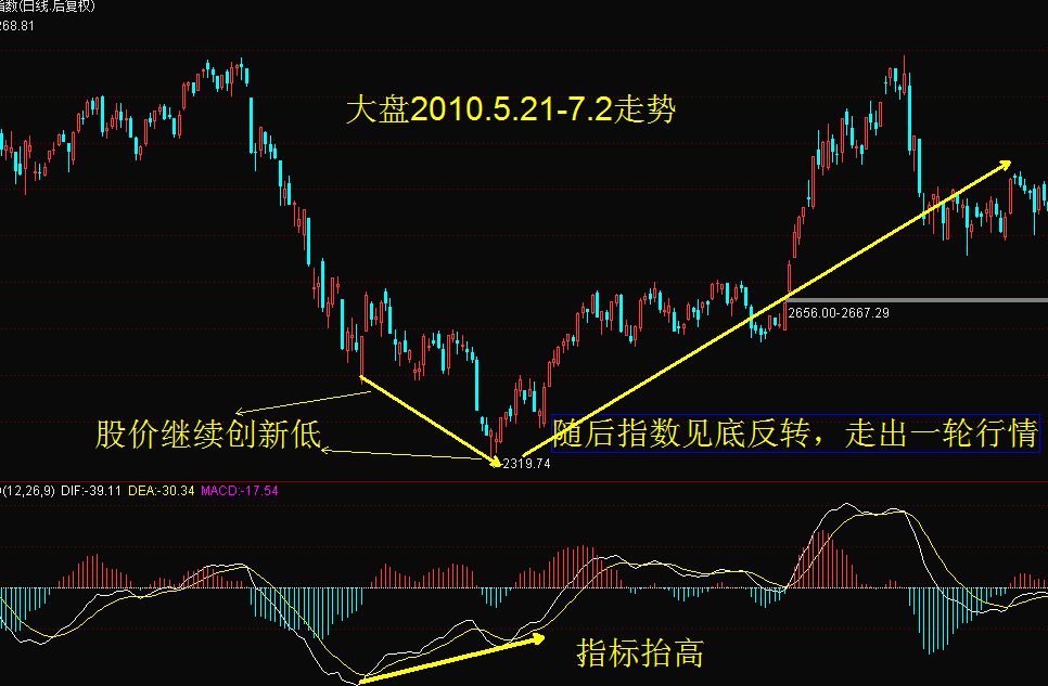 MACD底背离底背离:一般出现在股价或指数的低价位区,经过一段时间的调整后,股价继续创新低,指标却没有创新低,说明空头势力开始枯竭,预示股价有望探底回升,看涨信号强烈