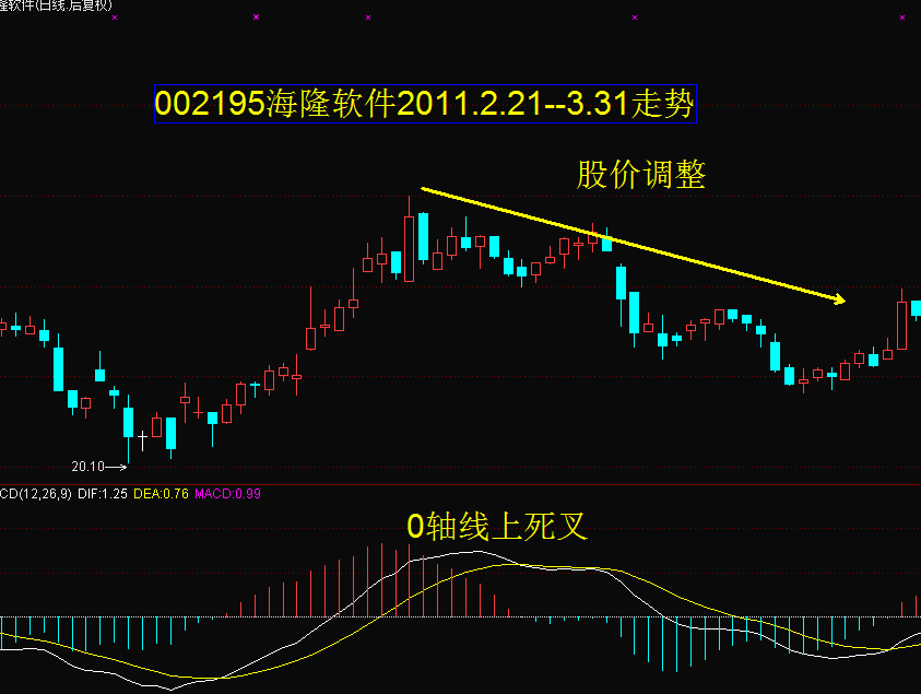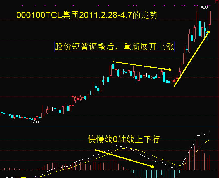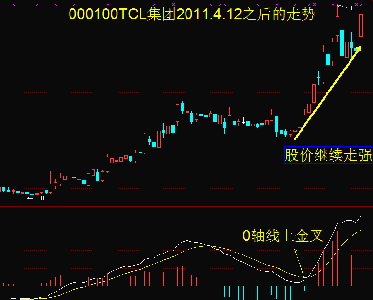 2快慢线交叉情况分析: 0轴线上,快线向上穿越慢线,金叉形式之一,表明市场处在强势中,股价稳步上扬 0轴线下,快线向上穿越慢线,金叉另一形式,表明市场处在弱势末端,股价开始止跌企稳 0轴线上,快线向下穿越慢线,死叉形式之一,表明市场处在强势末端,有调整压力 0轴线下,快线向下穿越慢线,死叉另一种形式,表明市场处在极度弱势中,反弹之后将再次杀跌