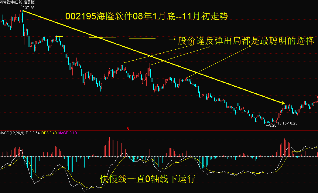 在实践中,MACD指标的背离一般在强势行情中比较可靠,股价在高位时,通常出现一次背离就形成头部,而底部的构筑,经常需要反复出现几次才成立。因此,MACD指标顶背离可靠性要远远大于底背离可靠性