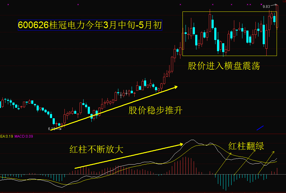 MACD柱状图分析 红柱持续放大,表明市场处在多头环境中,应短线买入股票或持股待涨,知道红柱无法放大,并翻绿时考虑卖出 绿柱持续放大,表明市场处在空头环境中,应短线卖出股票或持币观望,直到绿住开始缩小,并翻红,表明股价将止跌回稳,这时可少量建仓买入