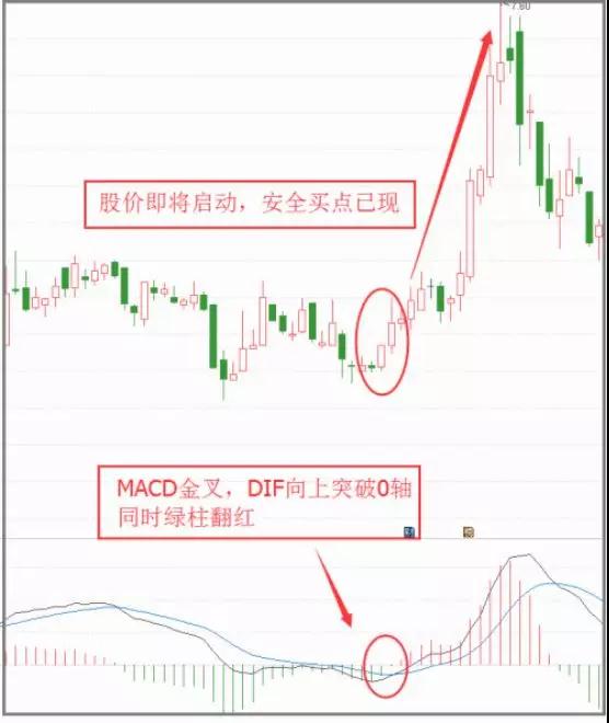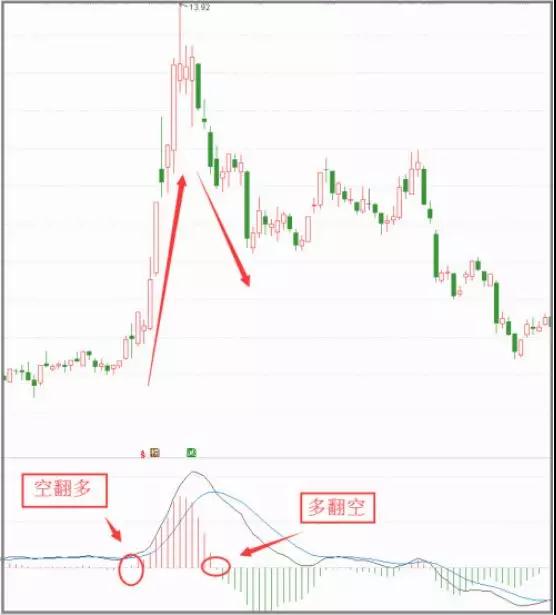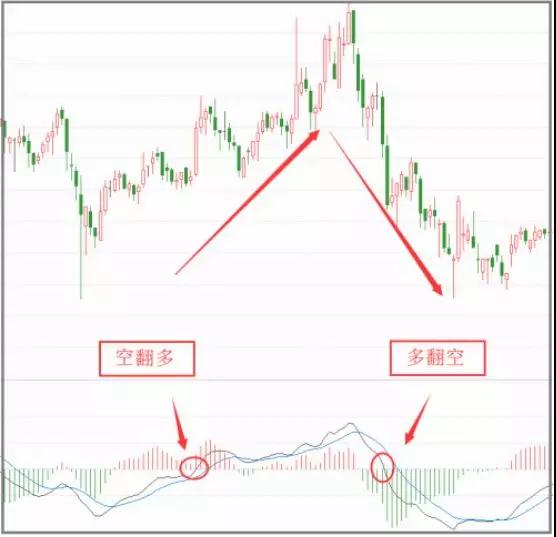 当MACD的柱状线在0轴之下,由下而上突破0轴,即绿柱翻红柱,则意味着股价中短期空翻多。