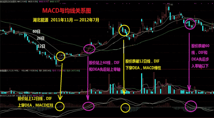 另外,在价格均线体系中,我们常把60日均线当做生命线,把MACD的零轴当做MACD指标的多空分界线。当DIF和DEA站上零轴就是多头市场;当DIF和DEA跌落零轴之下就是空头市场,长期研究发现,MACD的零轴可以近似看作是一条拉平的60日价格平均线。