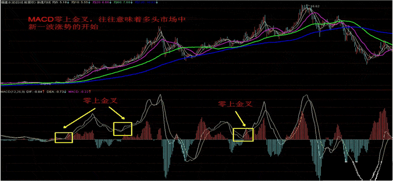 1、零上金叉:DIF和DEA都处于零轴上方时所形成的金叉。