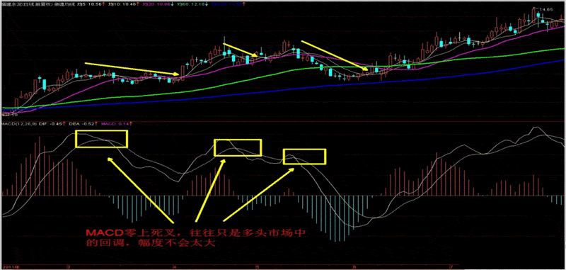 1、零上死叉:指DIF快线和DEA慢线同在零轴上方所形成的死叉。