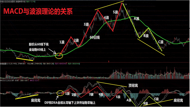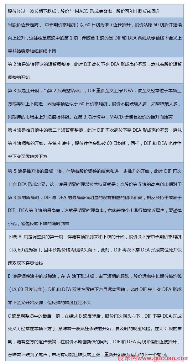 技术分析流派中,美国人艾略特通过研究发现了股价普遍按着上升五浪和下跌三浪的规律循环运行,因此创立了著名的波浪理论。伴随着股价的波浪式运行规律,MACD也有它自身的 波浪 。