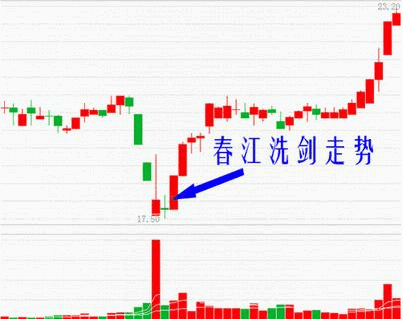 如ST青健000416在2001.11.26日形成春江洗剑形态,随后出现一轮连续的上攻走势。