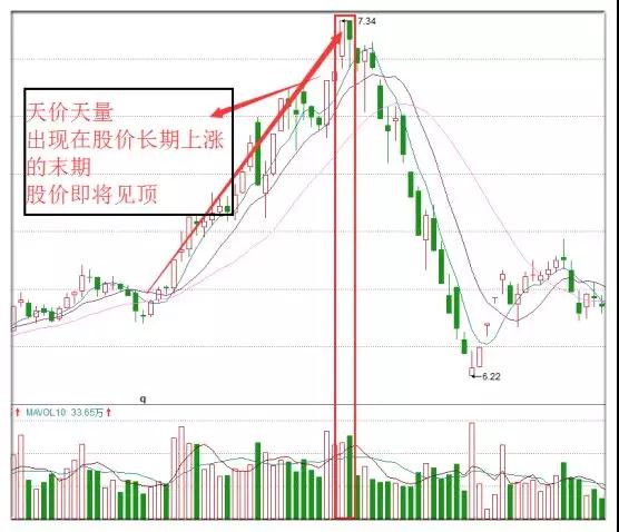 天价天量是量增价涨的极端形式,也是股市中一种特殊现象,常出现在股价长期上涨的末期。出现这种趋势时,往往是多空双方意见分歧巨大的表现,预示着股市或将见顶,下跌行情可能出现。