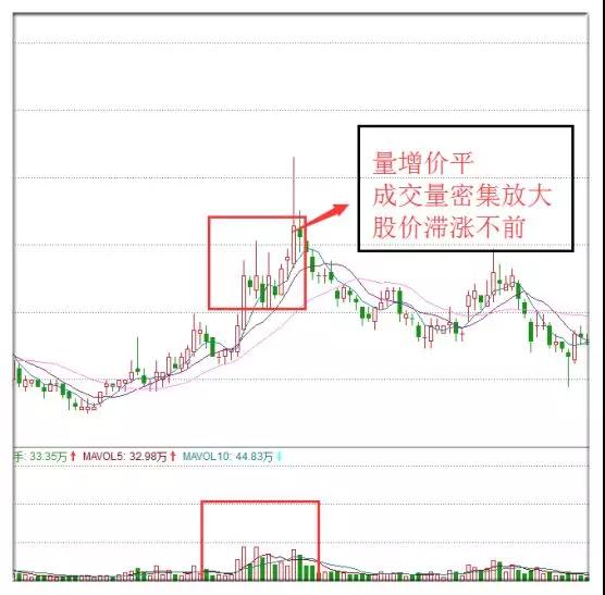 量增价平是指在成交量有所增加的情况下,股价却维持平稳波动,意味着市场多空双方意见分歧比较大,任何一方都没占据主导优势。而配合股价所处阶段的不同,操作策略也不尽相同。如该股在阶段性底部出现量增价平,标志着股价出现了滞涨,往往是空头开始发力的表现,成交量的放大很有可能是机构出货所致。