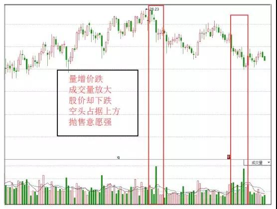 价格下跌,成交量反而上升,它意味着多空双方意见发生较大分歧,但空头占据了上风。如下图,该股在阶段性顶部出现量增价跌,机构加大了抛售力度,股价就会出现阶段性跌势,甚至反转,此时可以作为一个卖出时机的参考。