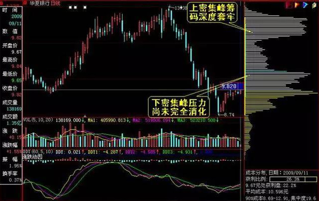 在看盘的时候,可以在日K线图右下侧点 筹 字调入移动成本分布。