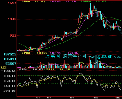 5.当RSI值高于80进入超买区,股价随时可能形成短期回档。
