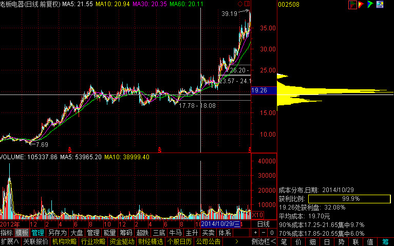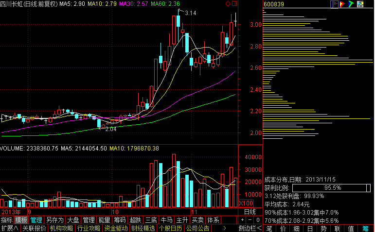 该功能显示个股筹码分布情况,对于分析盘面非常具备参考价值。