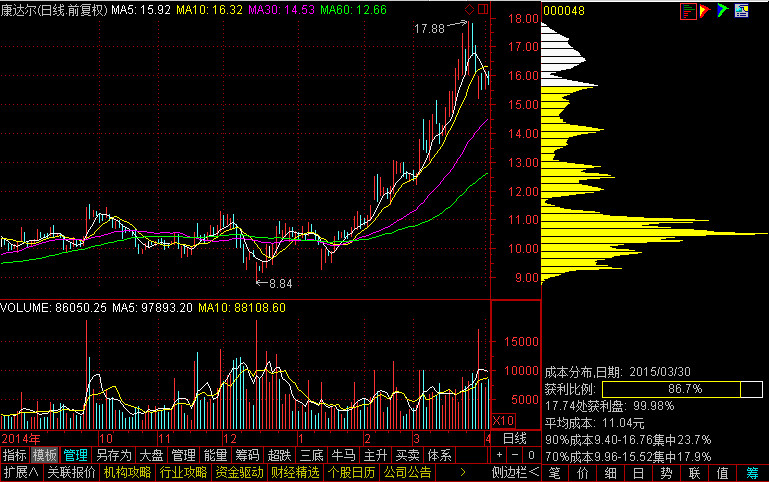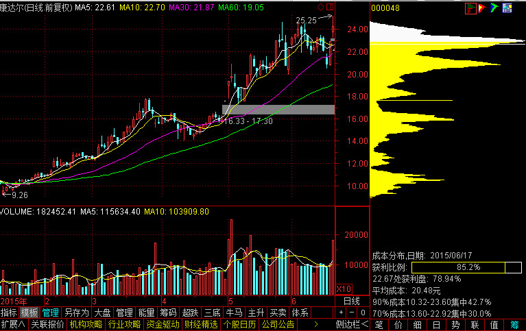 密集峰通常意味着强支撑和阻力,若股价放量突破密集峰后,回踩不破密集峰,则获得强支撑,股价有继续上攻可能。